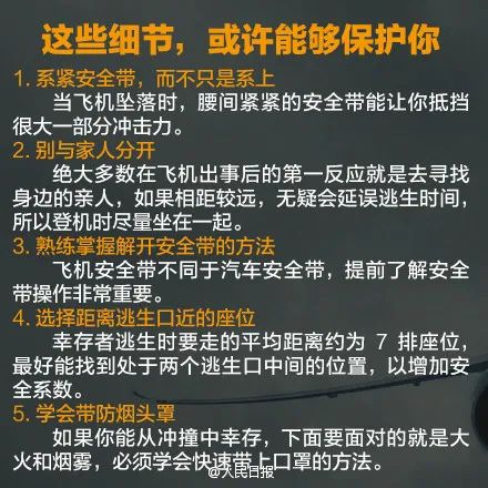 飛機(jī)失事時(shí),任何一個(gè)錯誤的動作都足以致命,而我們該如何自救?飛機(jī)上有保命座椅嗎?你了解“黑色10分鐘”嗎?飛機(jī)失事前會有哪些預(yù)兆?事故瞬間該如何應(yīng)對?