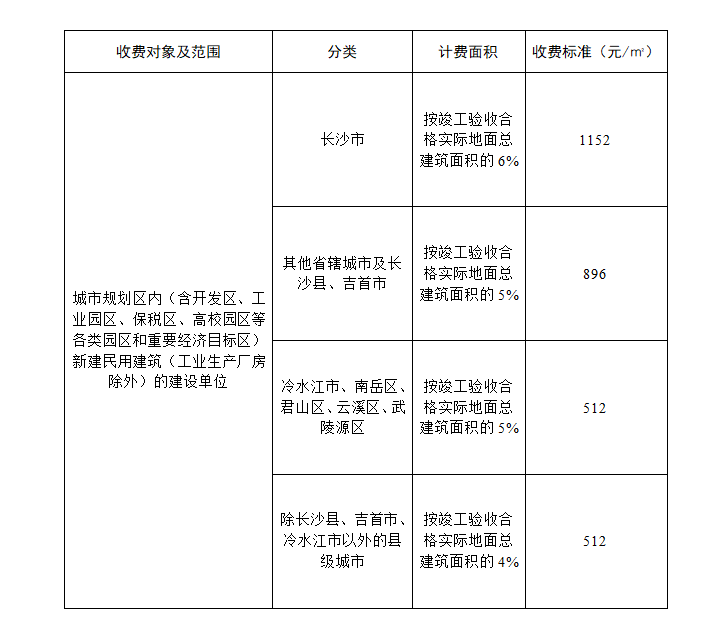 附件:湖南省防空地下室易地建設(shè)費標(biāo)準(zhǔn)表