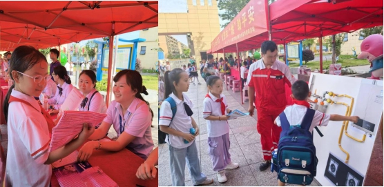 在學(xué)校前坪互動(dòng)區(qū)設(shè)置了咨詢及資料發(fā)放區(qū)、展板公示區(qū)、現(xiàn)場業(yè)務(wù)受理區(qū)和燃?xì)庠O(shè)施實(shí)操展示區(qū)。市天然氣公司工作人員熱情解答疑問,發(fā)放燃?xì)獍踩謨院托麄鲉雾?/span>,圖文并茂的展板直觀呈現(xiàn)安全知識。專業(yè)人員利用模擬燃?xì)庠O(shè)施,生動(dòng)演示安全操作規(guī)范和入戶安檢要點(diǎn),吸引眾多學(xué)生和家長駐足觀看、親身體驗(yàn)。運(yùn)行部人員還進(jìn)行了戶外燃?xì)鈾z測演示和應(yīng)急設(shè)備展示。