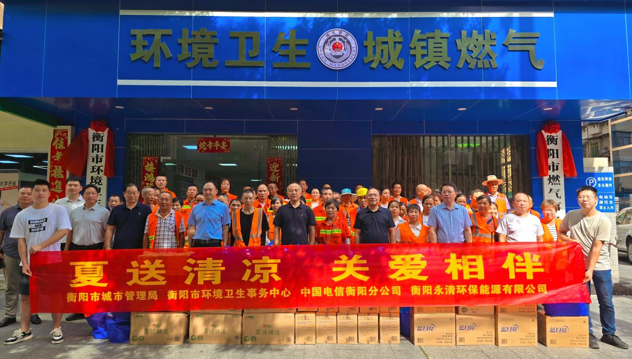 炎炎夏日,熱浪襲人。8月21日下午,衡陽市城市管理局組織開展了一場溫馨的"夏送清涼 關(guān)愛相伴"環(huán)衛(wèi)工人慰問活動,為奮戰(zhàn)在高溫一線的4277名城區(qū)(園區(qū))環(huán)衛(wèi)工人送去清涼與社會關(guān)懷。本次活動由衡陽市城市管理局攜手中國電信衡陽分公司、衡陽永清環(huán)保能源有限公司共同舉辦,以實際行動向"城市美容師"致敬。