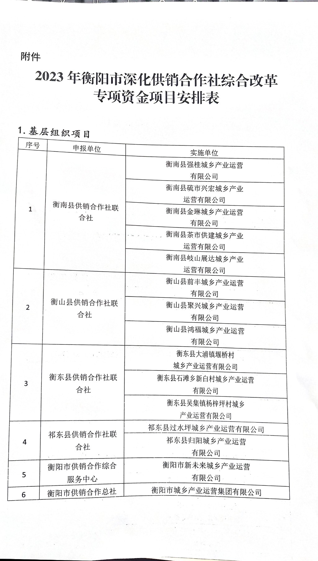 衡陽(yáng)市供銷(xiāo)合作總社關(guān)于公示2023年度深化供銷(xiāo)合作社綜合改革專項(xiàng)資金支持項(xiàng)目名單的通知