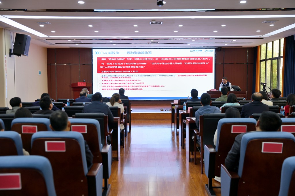 11月24日,衡陽(yáng)市國(guó)資委第54期“周五課堂”開(kāi)講,東吳證券高級(jí)培訓(xùn)師戴寒永應(yīng)邀作《基于城投并購(gòu)視角:高質(zhì)量發(fā)展新格局下的城投轉(zhuǎn)型探索》專題輔導(dǎo),市國(guó)資委機(jī)關(guān)干部職工、市屬監(jiān)管企業(yè)負(fù)責(zé)投資工作的同志參加培訓(xùn)。