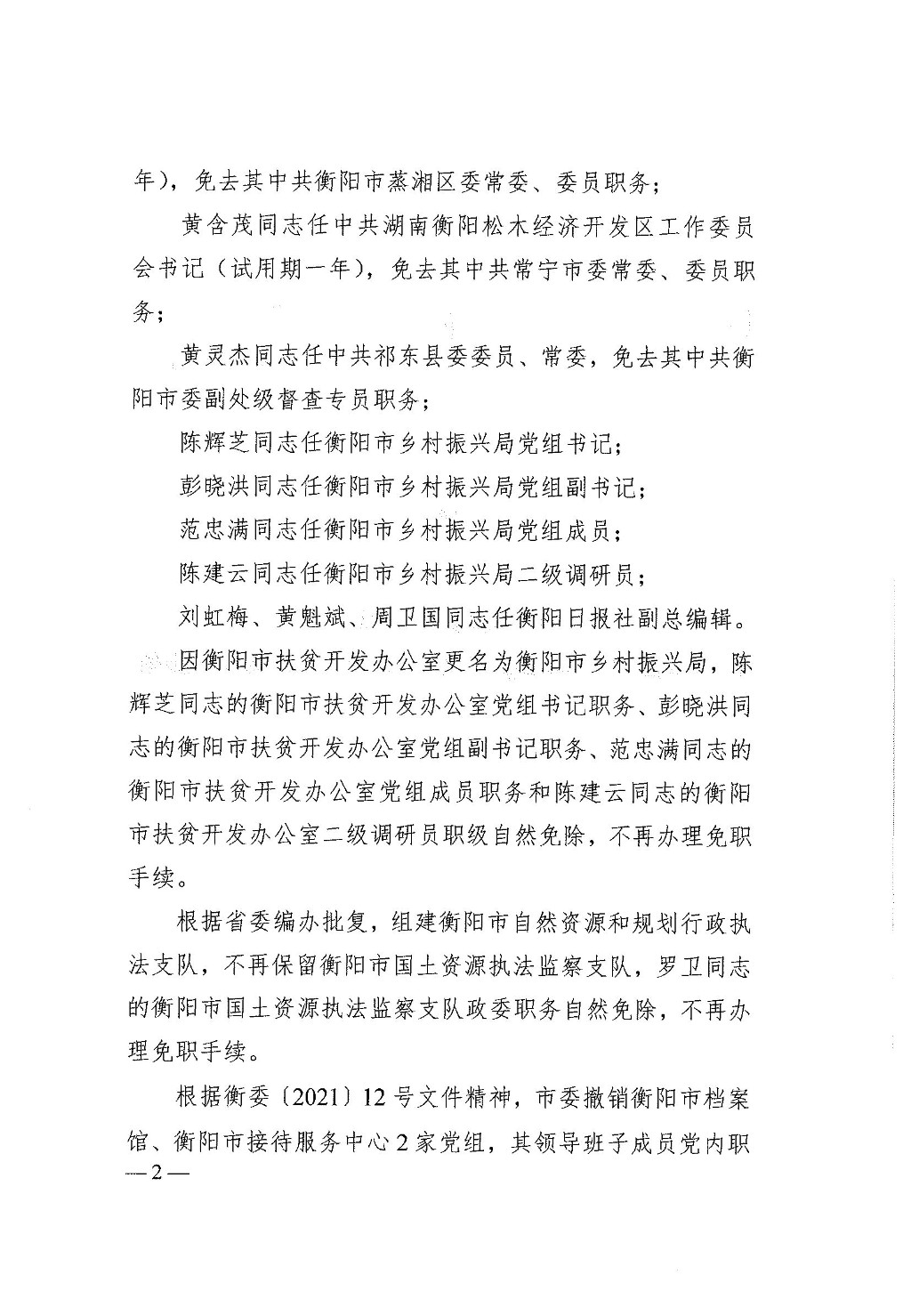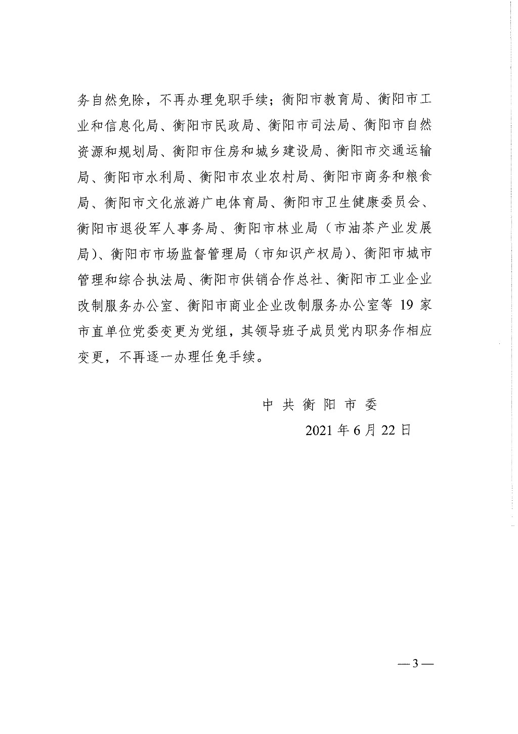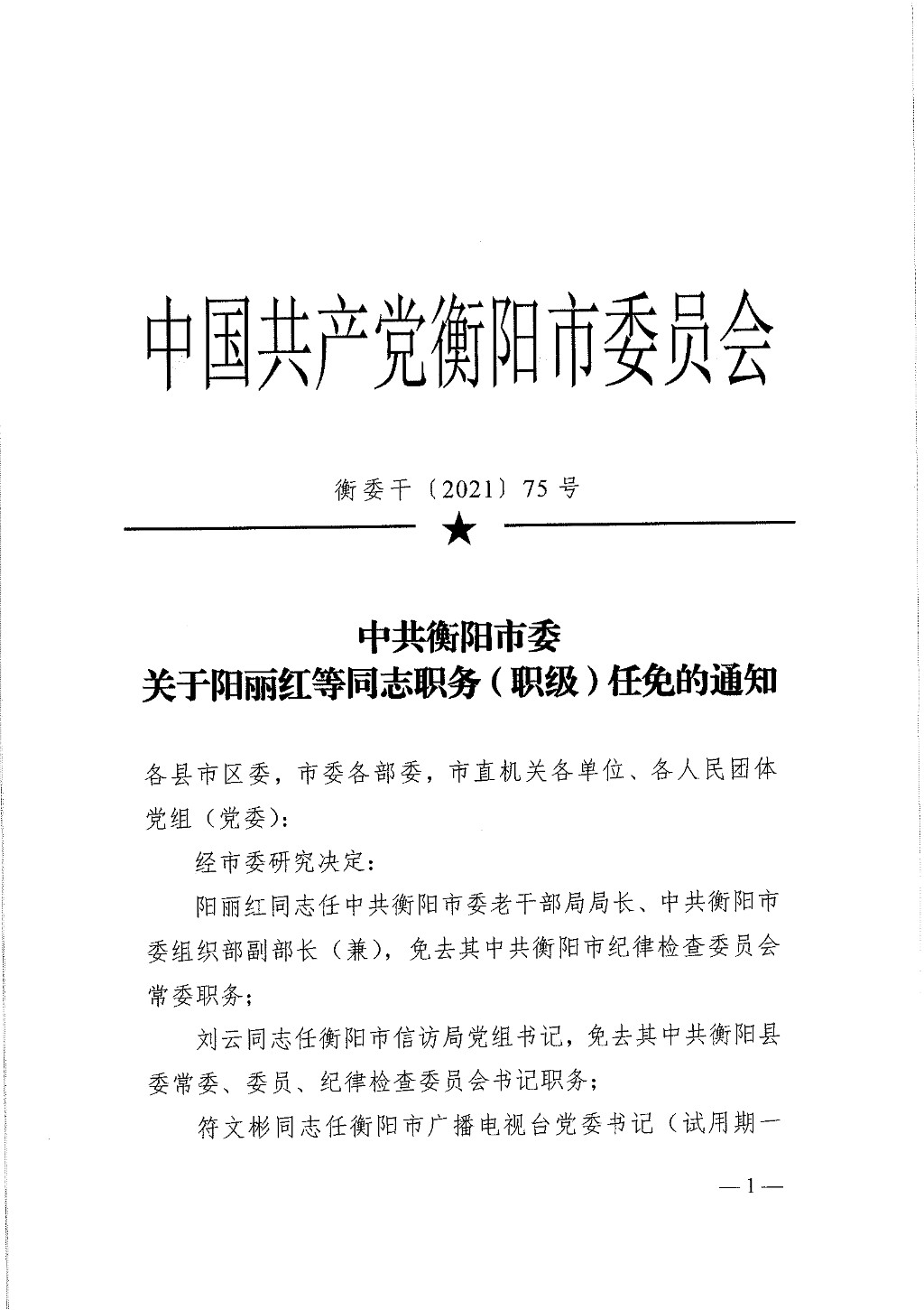 中共衡陽(yáng)市委關(guān)于陽(yáng)麗紅等同志職務(wù)(職級(jí))任免的通知
