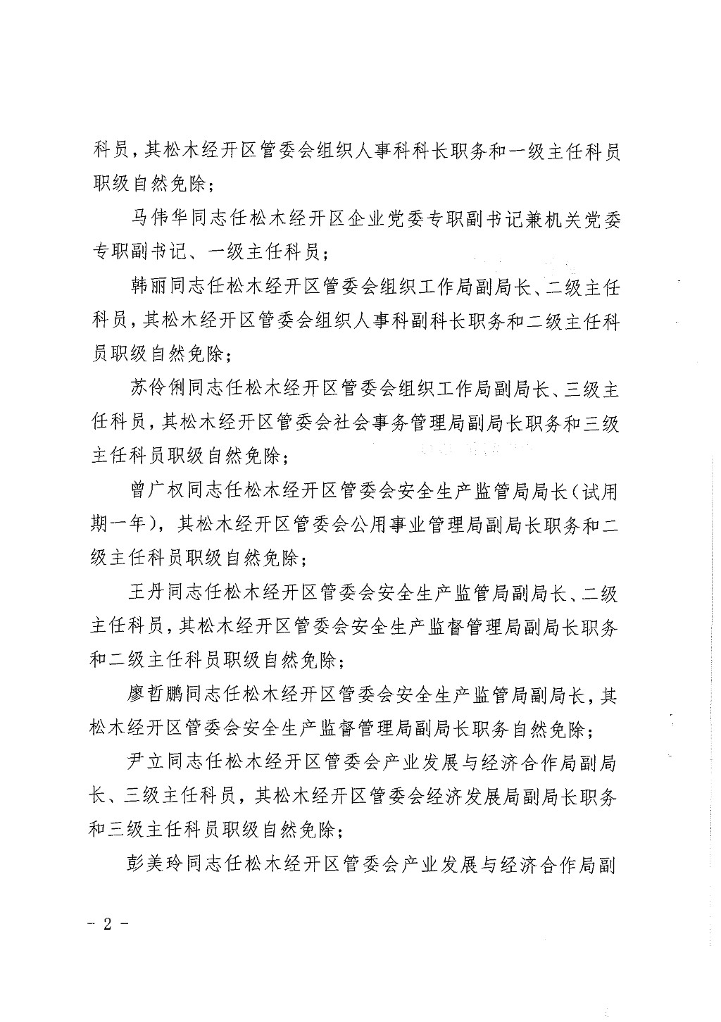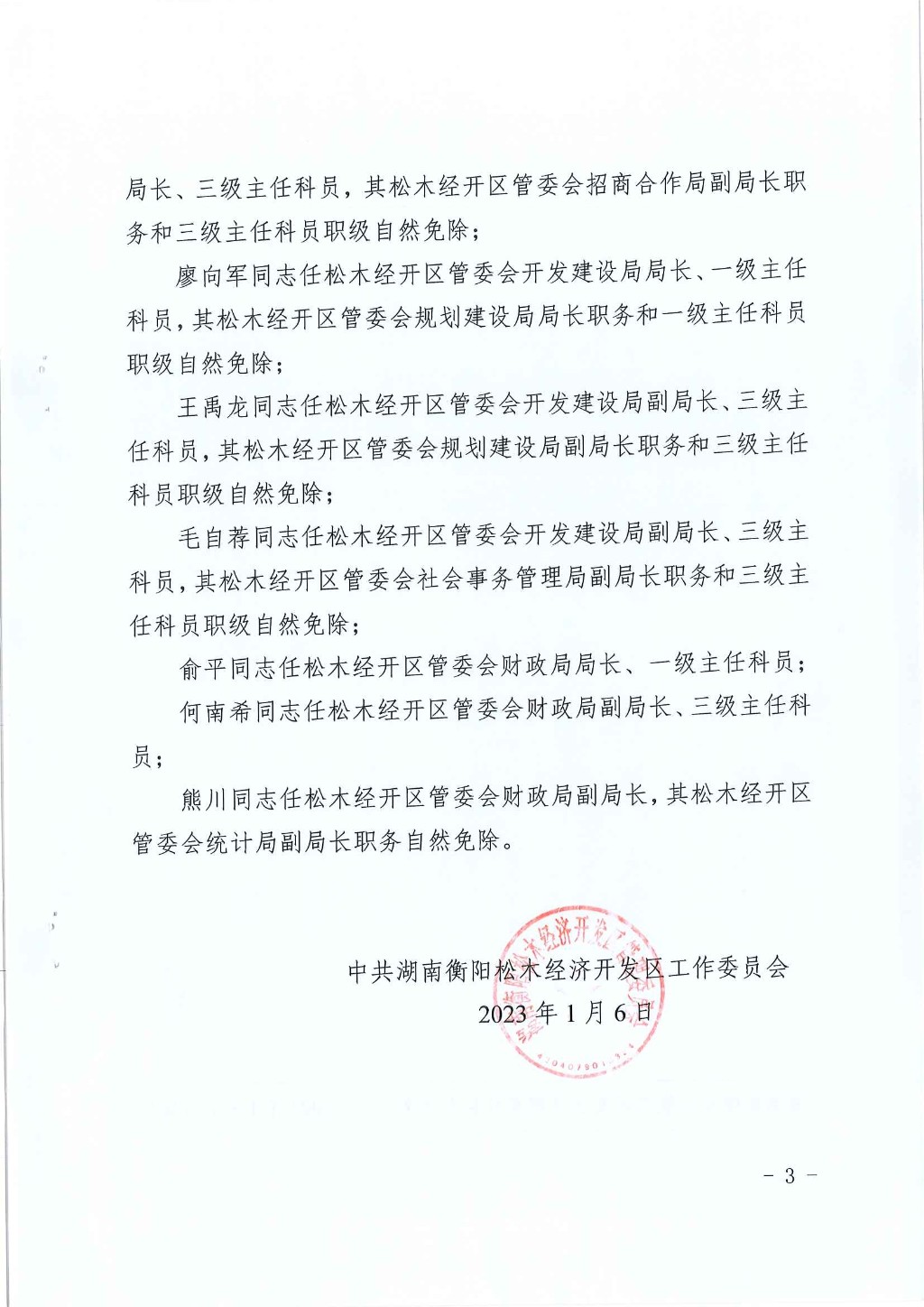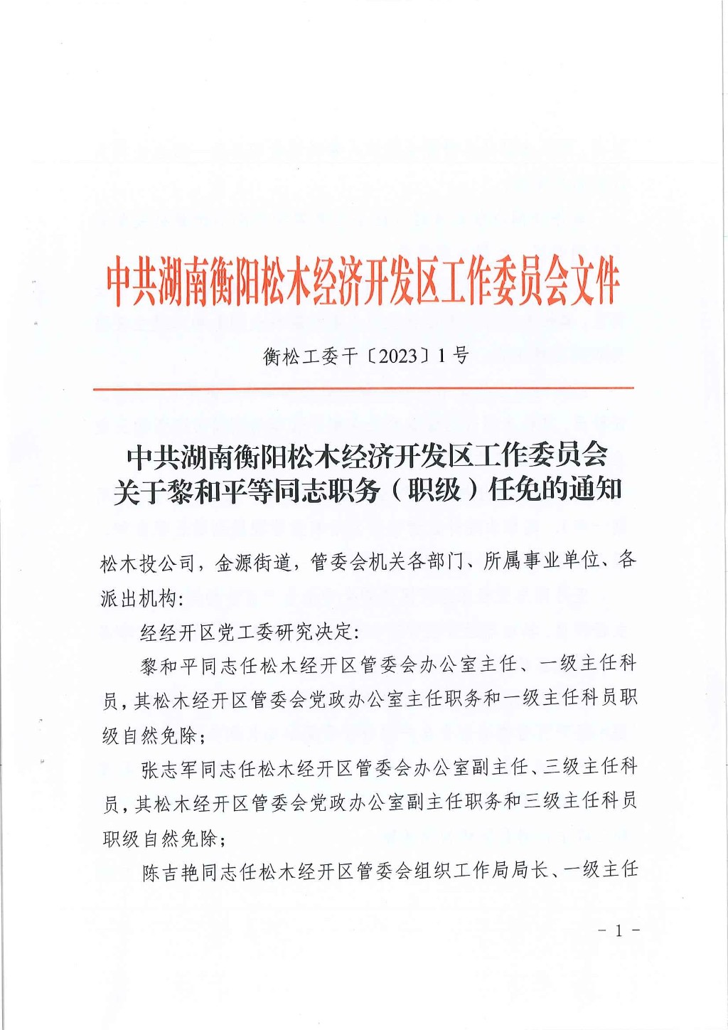 中共湖南衡陽松木經(jīng)濟(jì)開發(fā)區(qū)工作委員會關(guān)于黎和平等同志職務(wù)(職級)任免的通知