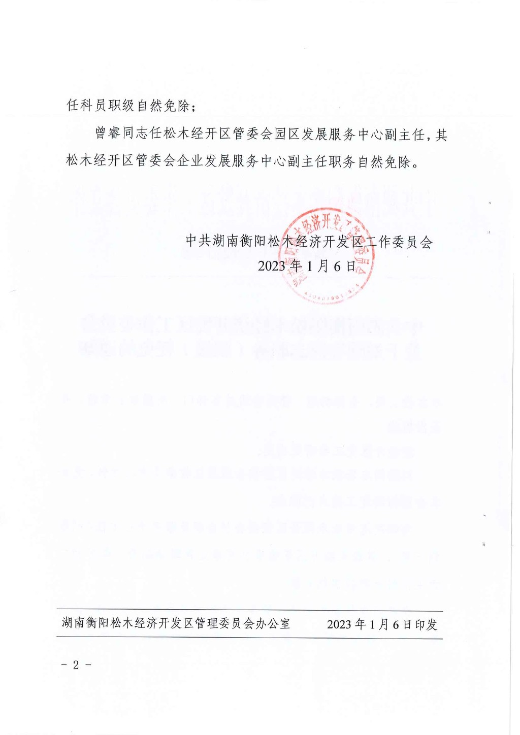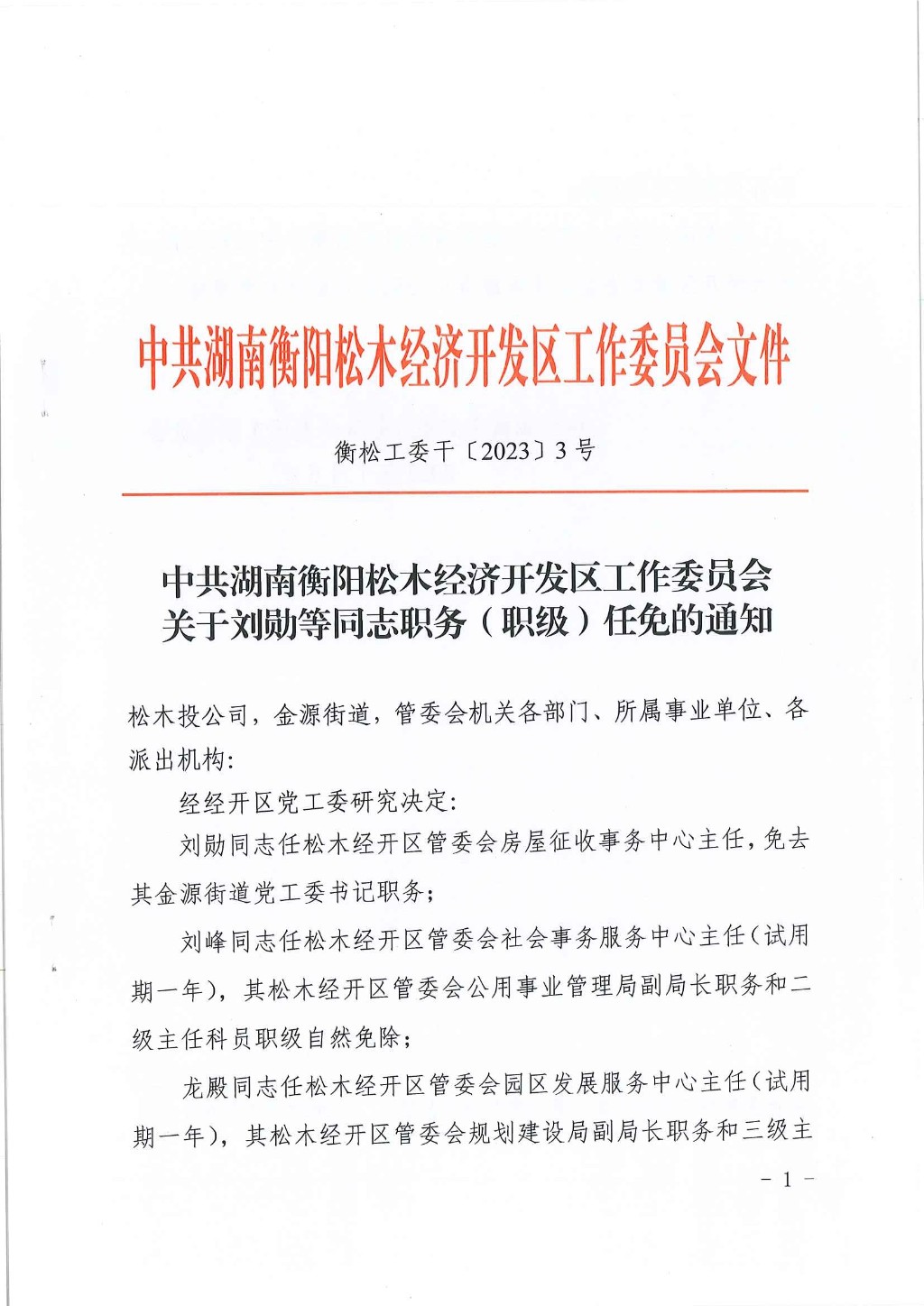 中共湖南衡陽(yáng)松木經(jīng)濟(jì)開(kāi)發(fā)區(qū)工作委員會(huì)關(guān)于劉勛等同志職務(wù)(職級(jí))任免的通知