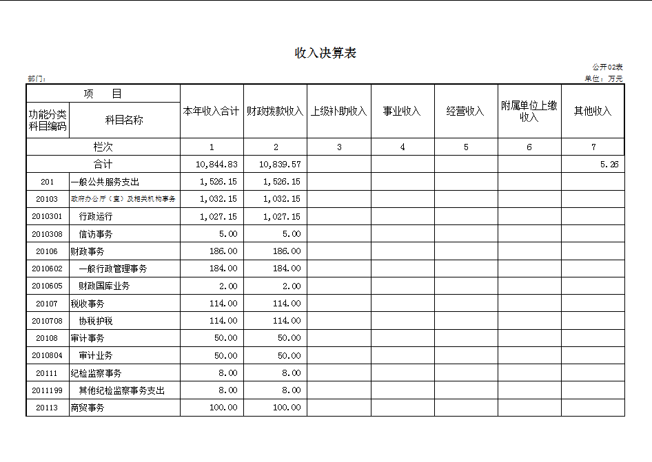 本年收入合計10844.83萬元,其中:財政撥款收入10839.57萬元,占 99.95 %;其他收入5.26萬元,占0.05%等。