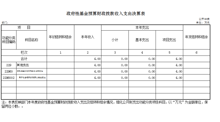 2016年度政府性基金預算收入 4 萬元,支出 4 萬元,其中:項目支出 4 萬元。