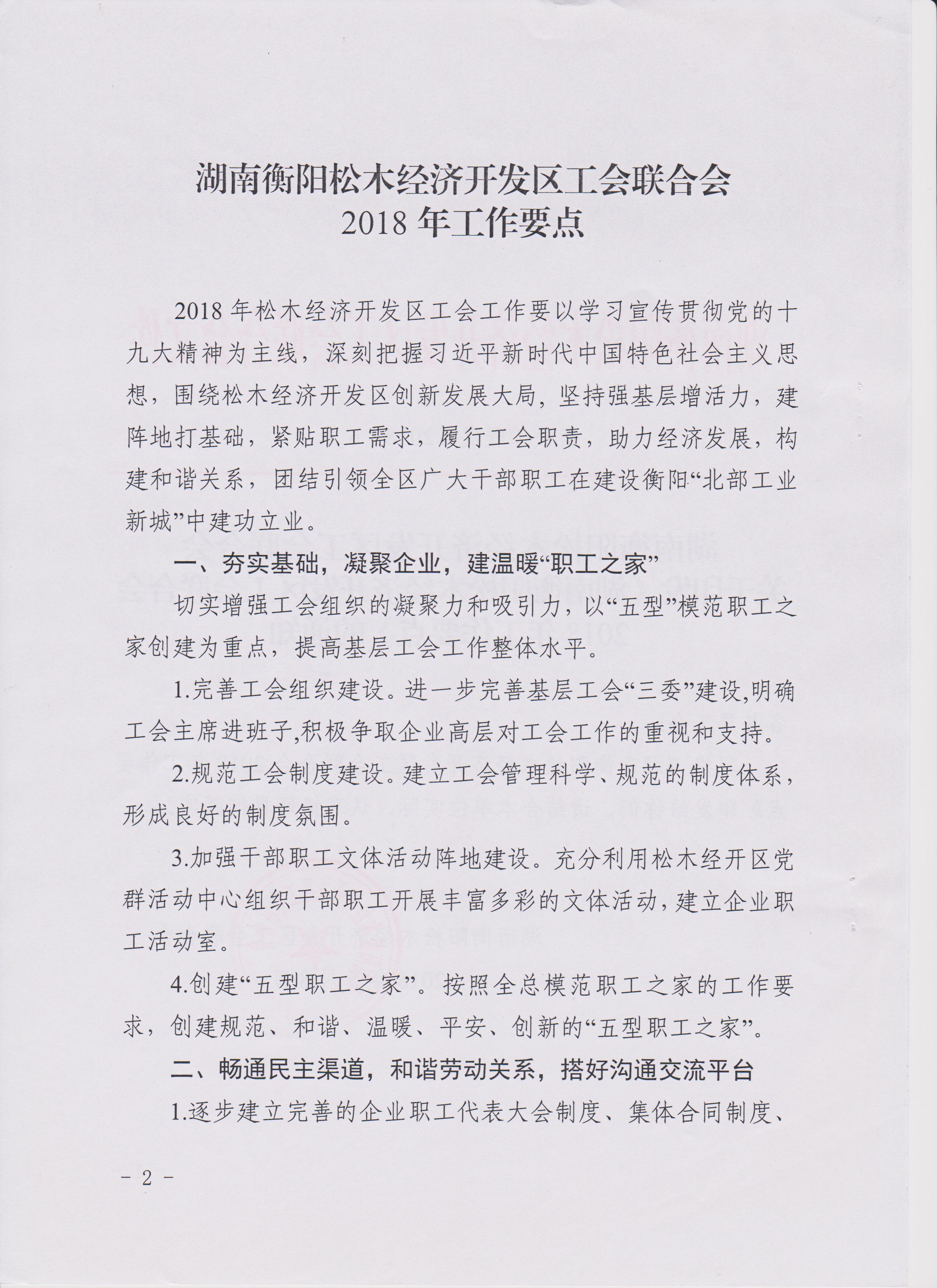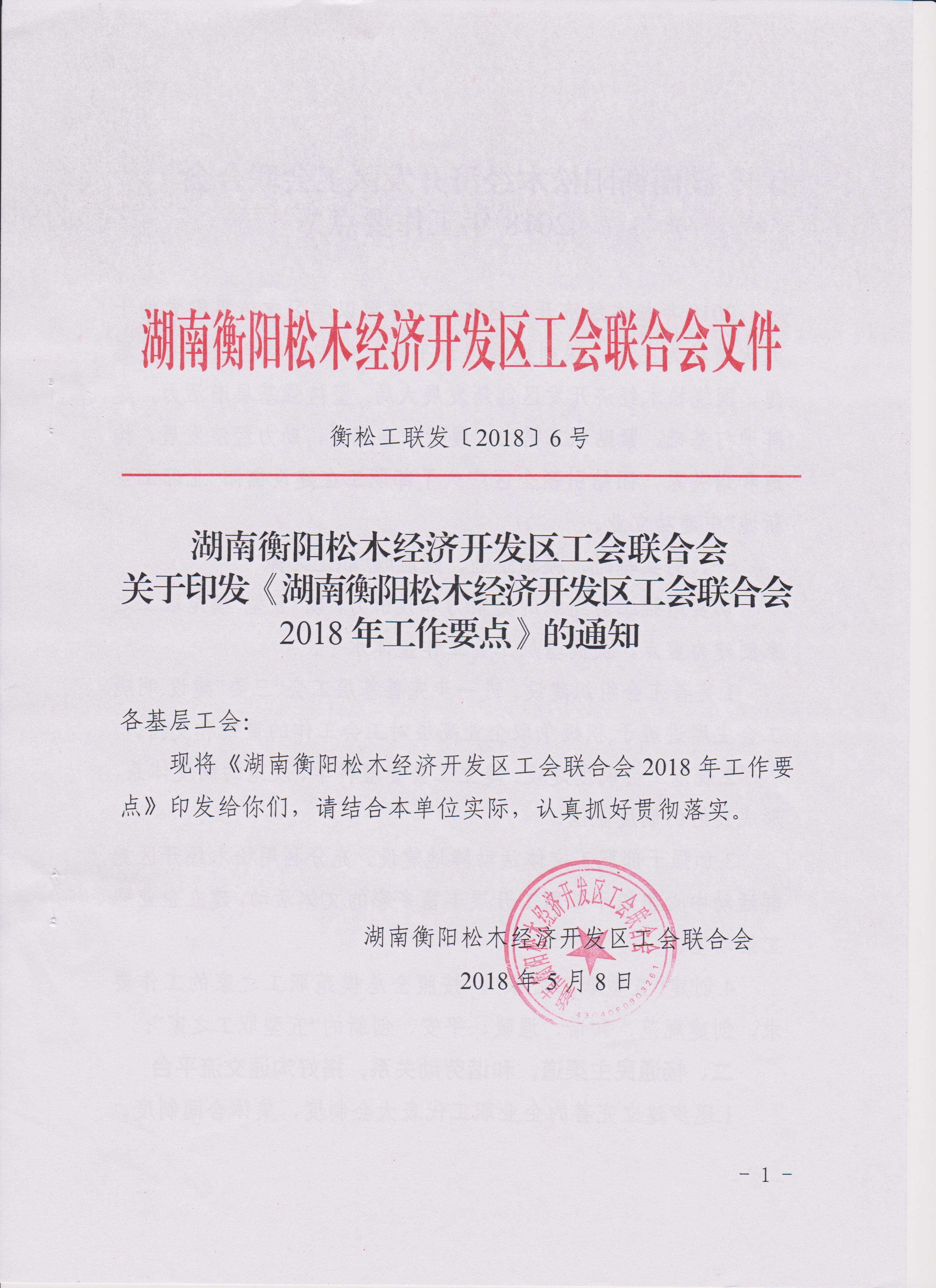 關(guān)于印發(fā)《湖南衡陽(yáng)松木經(jīng)濟(jì)開(kāi)發(fā)區(qū)工會(huì)聯(lián)合會(huì)2018年工作要點(diǎn)》的通知