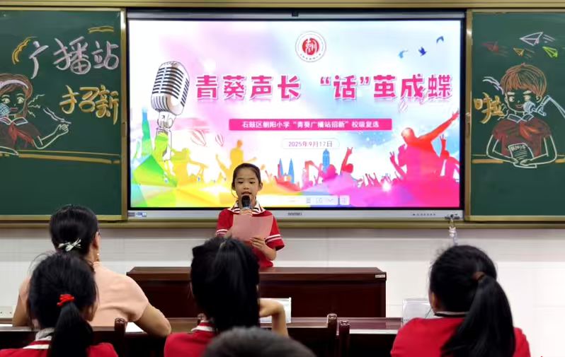 朝陽小學(xué)則以“聲”傳情,青葵廣播站“‘話’繭成蝶”播音員選拔活動熱鬧開啟。小選手們自信展示,或朗誦美文,或播報新聞,清脆童聲打動評委。入選的小廣播員將用聲音傳遞正能量,讓普通話成為校園文化傳播的重要載體。