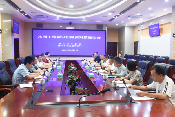 經(jīng)前期溝通協(xié)調(diào),8月9日下午,衡陽(yáng)市農(nóng)業(yè)發(fā)展銀行行長(zhǎng)劉夷夫帶隊(duì),一行6人到衡陽(yáng)市水利局對(duì)接水利工程建設(shè)投融資情況,雙方舉行了座談。市水利局黨組書記、局長(zhǎng)周志敏主持座談會(huì),在家局班子成員、相關(guān)科室負(fù)責(zé)人參加了座談會(huì)。