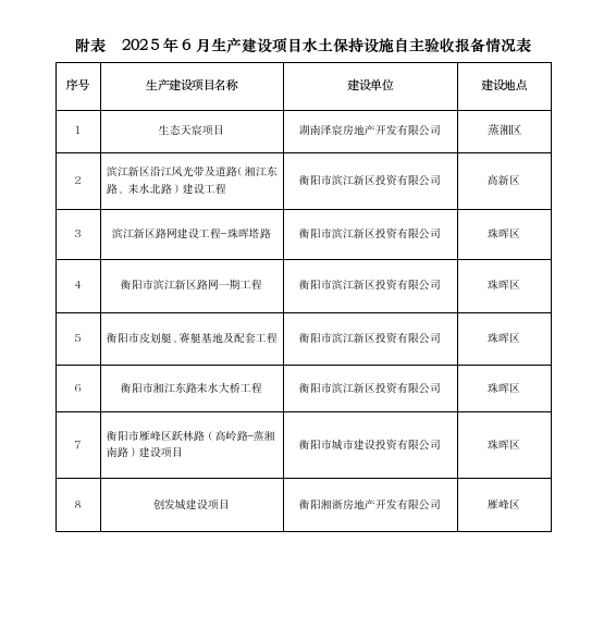 根據(jù)《國務(wù)院關(guān)于取消一批行政許可事項(xiàng)的決定》(國發(fā)〔2017〕46號(hào))《水利部關(guān)于加強(qiáng)事中事后監(jiān)管規(guī)范生產(chǎn)建設(shè)項(xiàng)目水土保持設(shè)施自主驗(yàn)收的通知》(水保〔2017〕365號(hào))《水利部辦公廳關(guān)于印發(fā)生產(chǎn)建設(shè)項(xiàng)目水土保持監(jiān)督管理辦法的通知》(辦水?!?019〕172號(hào))有關(guān)規(guī)定,2025年6月,我局接受了8個(gè)生產(chǎn)建設(shè)項(xiàng)目水土保持設(shè)施自主驗(yàn)收的報(bào)備?,F(xiàn)予以公告,公告期2025年7月1日—2025年7月7日?! ?/span>