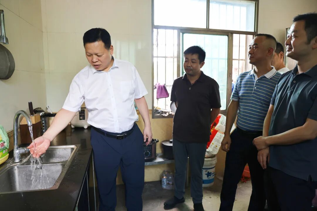 隨后,魏中發(fā)一行來(lái)到東陽(yáng)渡村絆塘組,現(xiàn)場(chǎng)了解村民家中水龍頭出水的水量、水壓和水質(zhì)狀況,聽(tīng)取群眾訴求和意見(jiàn)建議。