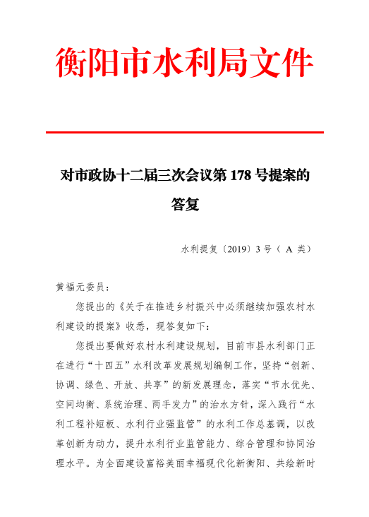 對市政協(xié)第二屆三次會議第178號提案的答復(fù)
