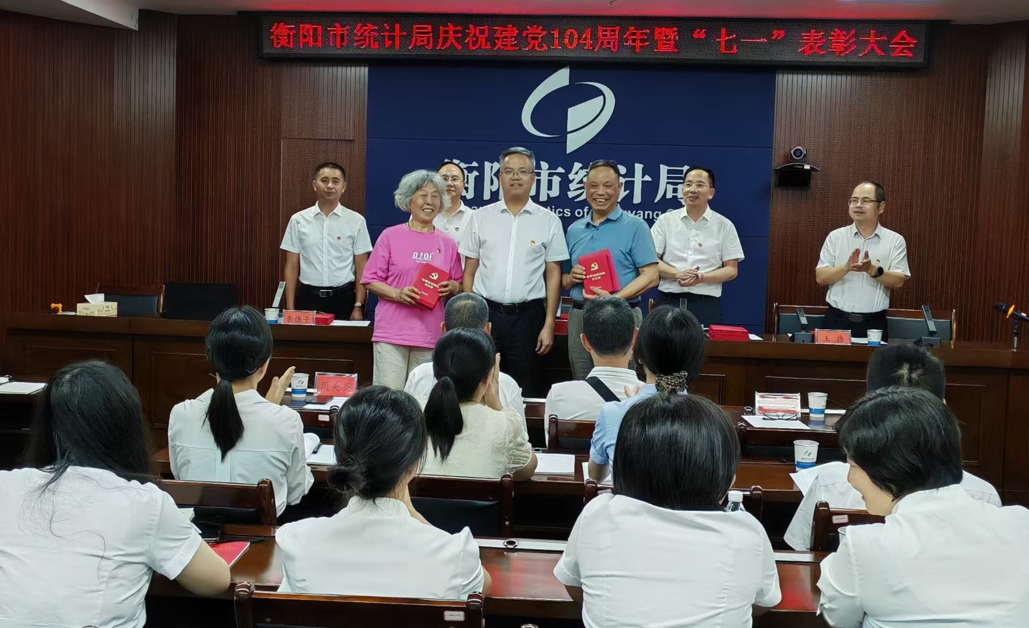 6月30日,衡陽市統(tǒng)計局召開慶祝中國共產(chǎn)黨成立104周年暨"七一"表彰大會,深入學習貫徹習近平總書記關于黨的建設的重要思想,激勵全局廣大黨員牢記初心使命、勇于擔當作為,不斷開創(chuàng)新時代新征程統(tǒng)計事業(yè)發(fā)展新局面。局黨組書記、局長郭松青向退休黨員何方社同志、周美英同志頒發(fā)"光榮在黨50年紀念章"和"政治生日紀念卡",帶領全局黨員干部重溫入黨誓詞,并講授深入貫徹中央八項規(guī)定精神學習教育專題黨課。局領導為先進黨支部、優(yōu)秀共產(chǎn)黨員、優(yōu)秀黨務工作者和2024年度績效考核優(yōu)秀個人頒發(fā)榮譽證書。局黨組成員、副局長、機關黨委書記劉霖主持會議并宣讀表彰決定。