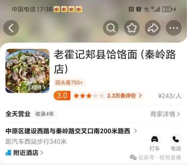 經(jīng)視直播記者嘗試聯(lián)系老霍記郟縣饸饹面(秦嶺路店),電話無人接聽。