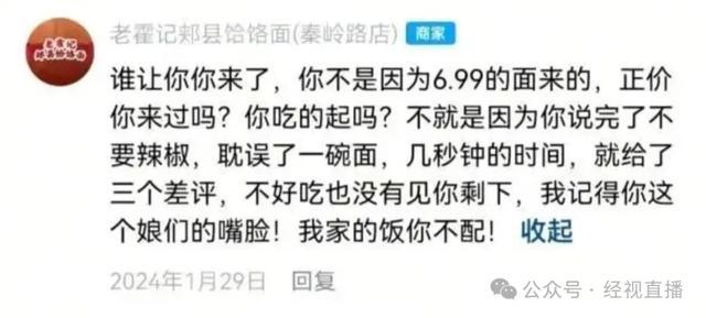 該負責(zé)人表示,做生意本就應(yīng)當誠信經(jīng)營、與人為善?!捌呷顺悦媸录卑l(fā)生后,老霍記郟縣饸饹面秦嶺路店不僅缺失誠信,還對網(wǎng)友的評論強硬對抗,致使眾多網(wǎng)友都不愿前往秦嶺路消費。“他這種情況太不妥當了,還辱罵網(wǎng)友,我認為他的店就應(yīng)該關(guān)門。”