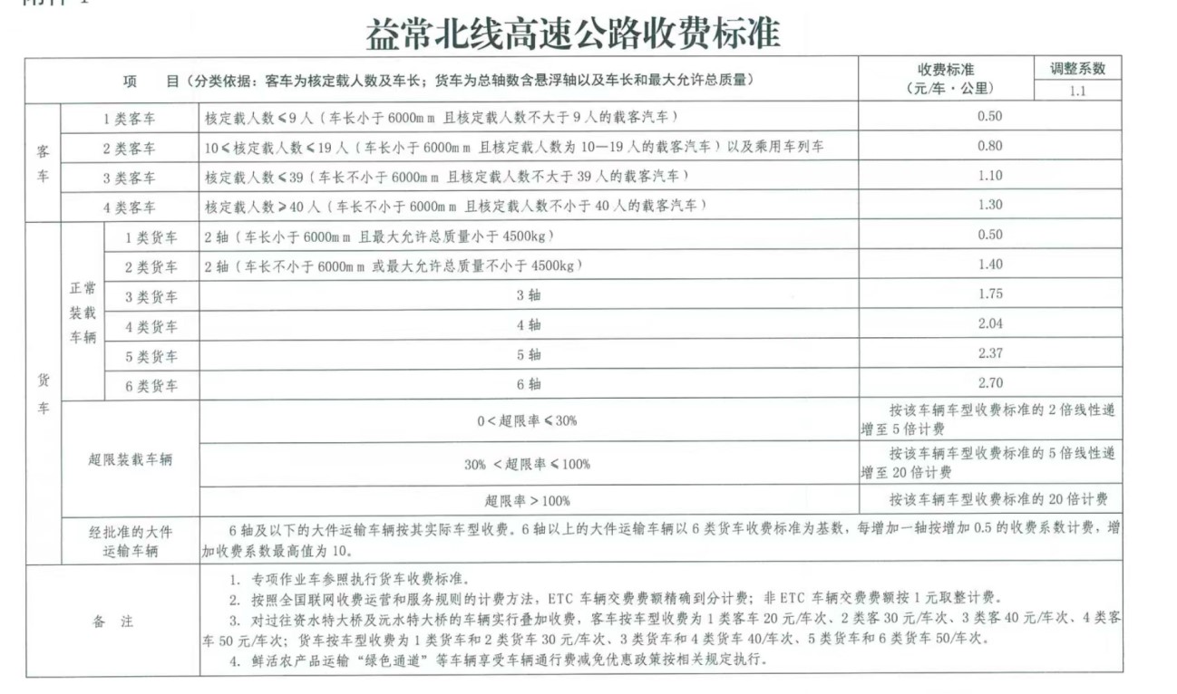 ▲益常北線高速公路收費標準。