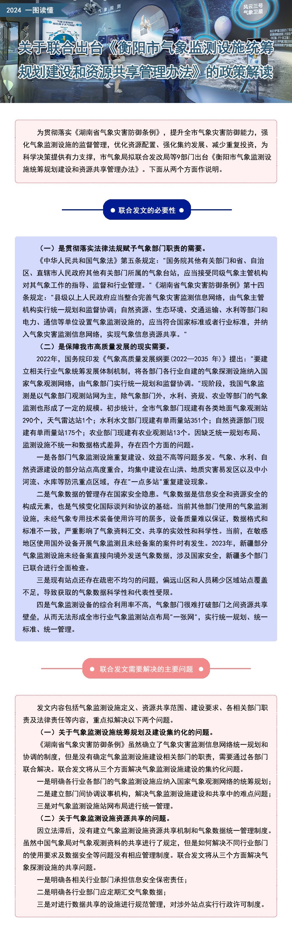 圖解:關(guān)于聯(lián)合出臺《衡陽市氣象監(jiān)測設(shè)施統(tǒng)籌規(guī)劃建設(shè)和資源共享管理辦法》的政策解讀
