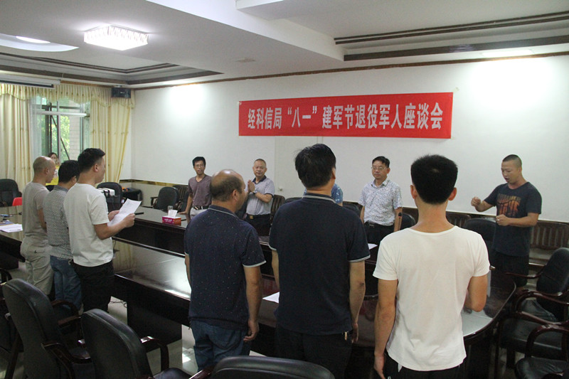 為慶祝中國(guó)人民解放軍建軍91周年,弘揚(yáng)偉大的愛國(guó)主義和民族主義精神;7月31日下午,縣經(jīng)科信局組織召開“八一”建軍節(jié)座談會(huì),局全體黨組成員參加座談;原國(guó)有企業(yè)退役軍人代表、機(jī)關(guān)全體退役軍人和現(xiàn)役軍屬10多人歡聚一堂,回顧崢嶸歲月,感懷新時(shí)代、新生活、新征程。
