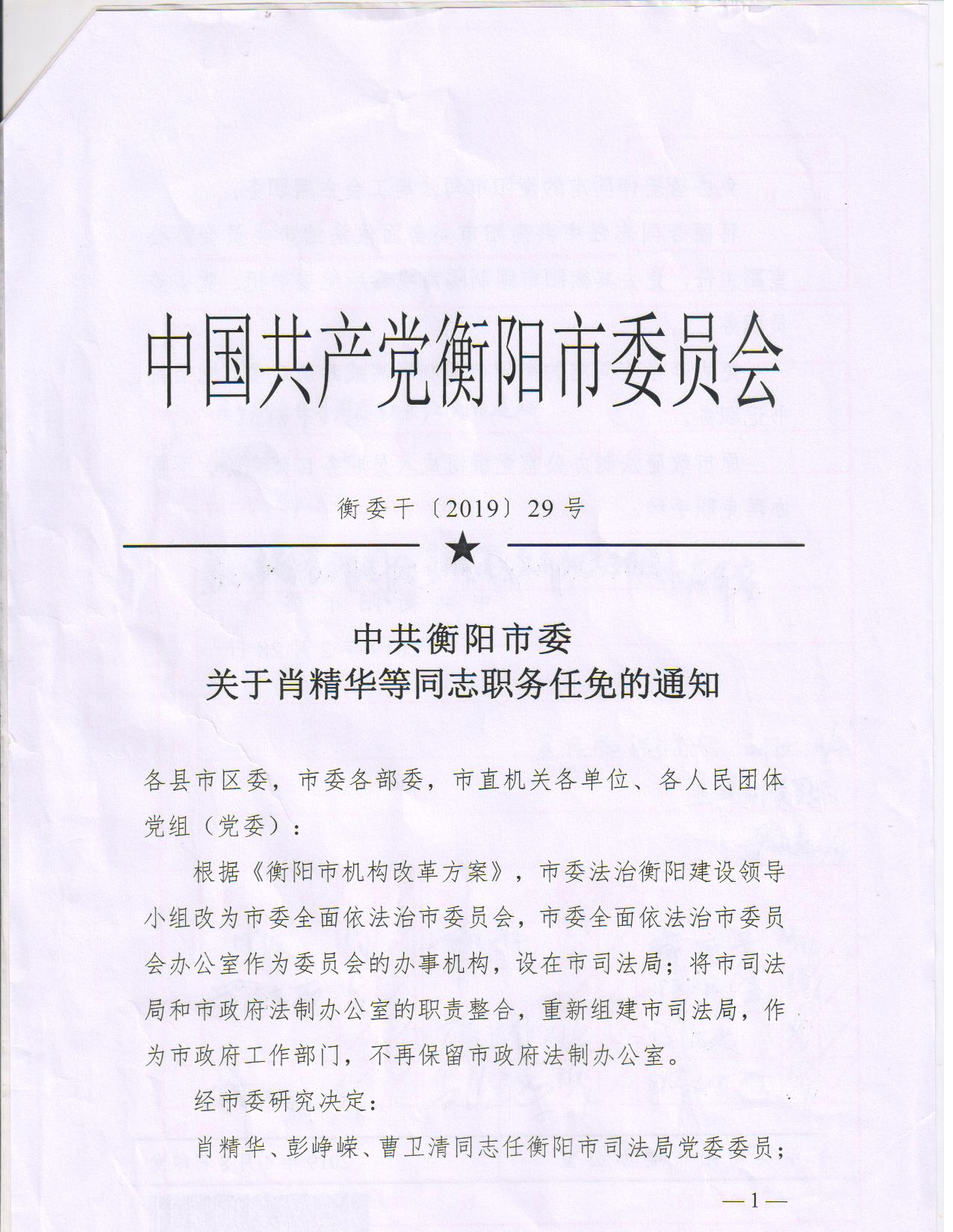 關(guān)于肖精華等同志職務(wù)任免的通知