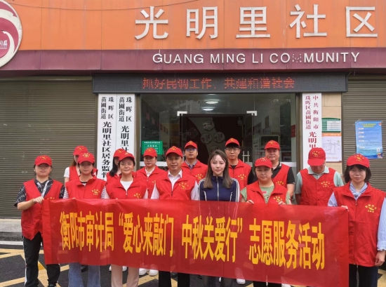 9月15日,市審計(jì)局組織“衡陽群眾”志愿者深入聯(lián)點(diǎn)社區(qū)—珠暉區(qū)光明里社區(qū)開展“愛心來敲門中秋關(guān)愛行”志愿服務(wù)活動(dòng)及創(chuàng)建全國文明城市入戶宣傳活動(dòng)。