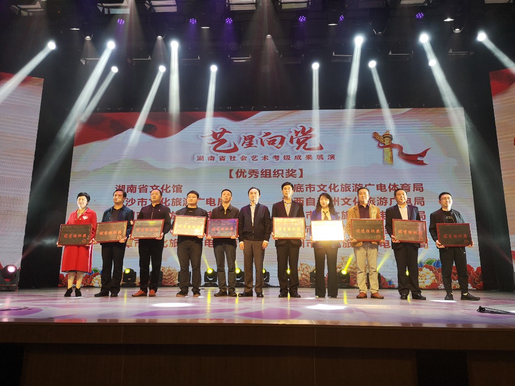 4月24日晚,由湖南省文化和旅游廳主辦的"藝星向黨"湖南省社會藝術水平考級展演(展覽)在省文化館群星劇場隆重舉行,由我市選送的群舞《盛世長歌》、《紅梅贊》、《花兒·那樣紅》和合唱《唱給七月的歌》等10個節(jié)目作品參加了展演和展覽,在演出中綻放光彩,博得全場嘉賓和觀眾的一致好評。