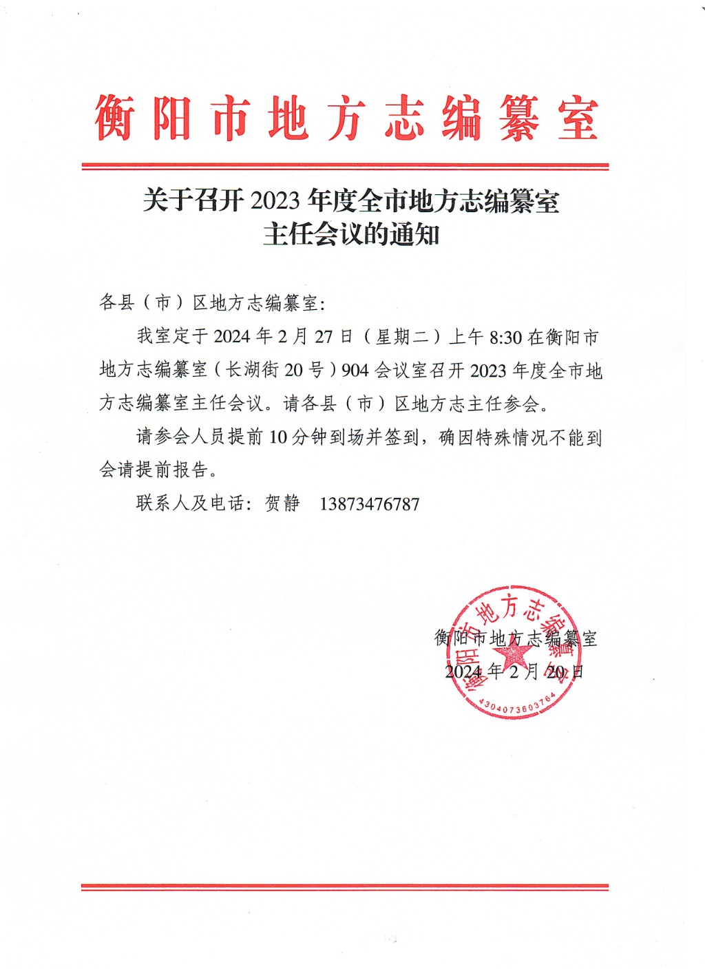 關(guān)于召開2023年度全市地方志編纂室主任會(huì)議的通知
