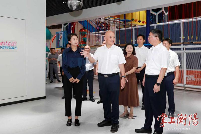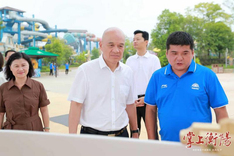▲8月13日上午,劉越高在石鼓區(qū)瑪雅海灘水公園調(diào)研。