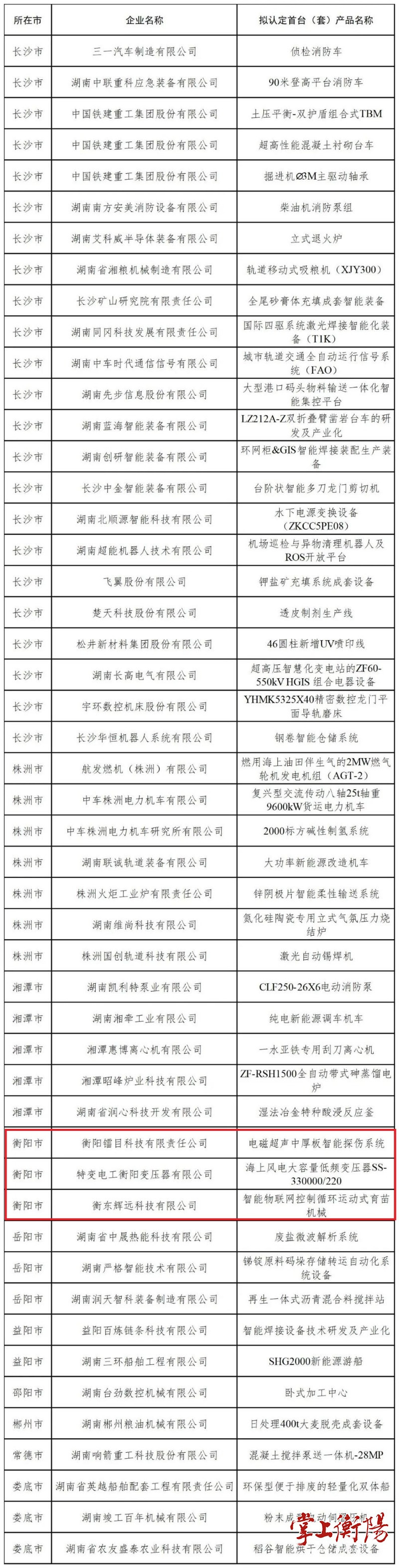 近日,湖南省工業(yè)和信息化廳公示2025年湖南省首臺(套)重大技術(shù)裝備擬認定名單,衡陽3家企業(yè)的3項技術(shù)裝備成功入圍。