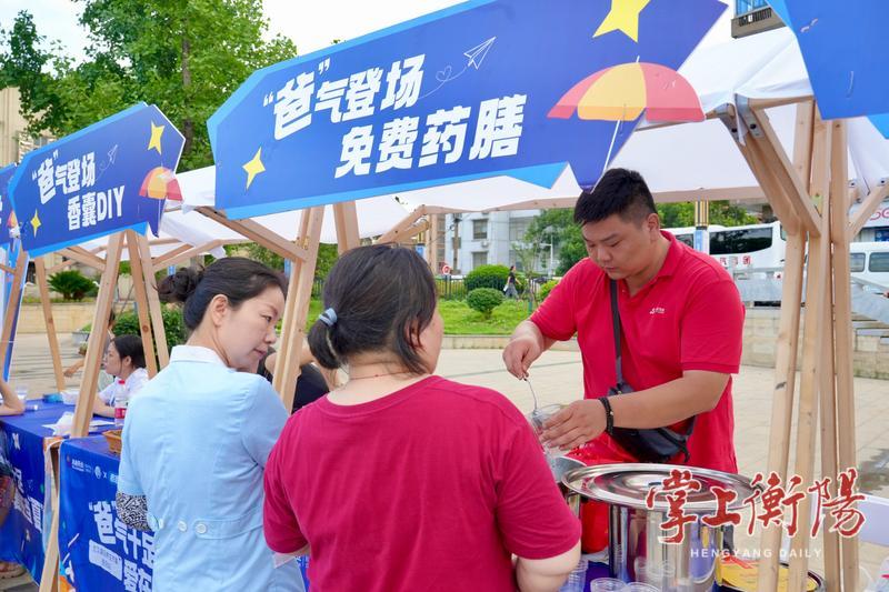 活動現(xiàn)場,“爸氣手作坊”“爸氣特調(diào)局”等特色區(qū)域人氣十足。市民們不僅可以免費(fèi)體驗(yàn)古法香囊DIY、養(yǎng)生藥膳,還能參與“爸氣摸高賽”“爸氣活力彈”等趣味游戲。每完成一項(xiàng)挑戰(zhàn),就能獲得印章,集齊5枚印章即可領(lǐng)取人參桑椹枸杞茶。