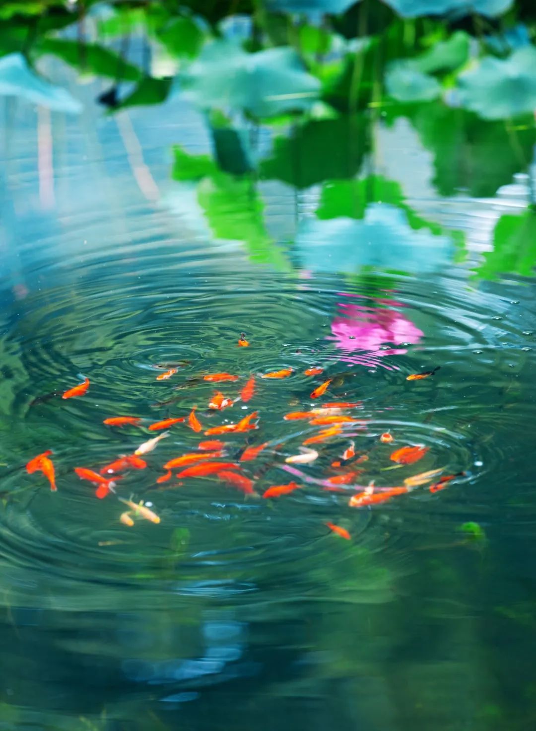 池上新荷水中魚戲