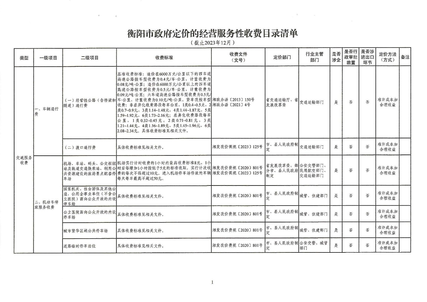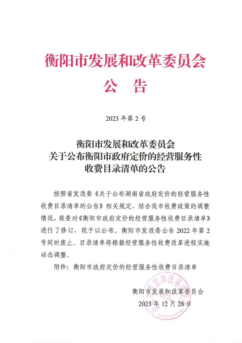 衡陽市發(fā)展和改革委員會關(guān)于公布衡陽市政府定價(jià)的經(jīng)營服務(wù)性收費(fèi)目錄清單的公告