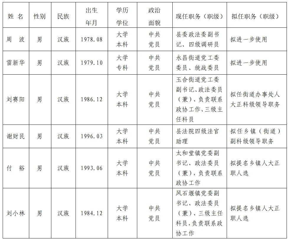 為了加強(qiáng)對干部選拔工作的監(jiān)督,提高識別和任用干部的準(zhǔn)確程度,現(xiàn)對祁東縣委常委會會議研究的下列擬任人選進(jìn)行任前公示: