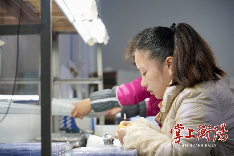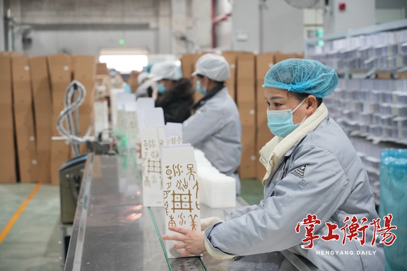 ▲湖南零零玖生物科技有限公司工人在包裝酒品。張志偉攝