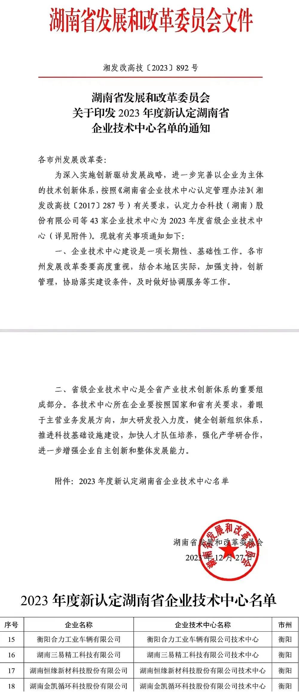 近日,省發(fā)改委發(fā)布2023年度新認(rèn)定湖南省企業(yè)技術(shù)中心和2023年湖南省工程研究中心名單,我市共有7家單位上榜,其中新認(rèn)定合力工業(yè)車輛、三易精工科技、恒緣新材科技、金凱循環(huán)科技等4家省級(jí)企業(yè)技術(shù)中心,美蓓達(dá)科技、南華大學(xué)、湖南工學(xué)院3家單位列入省級(jí)工程研究中心建設(shè)項(xiàng)目計(jì)劃。截至目前,我市省級(jí)企業(yè)技術(shù)中心已達(dá)28家,省級(jí)工程研究中心已達(dá)25家。