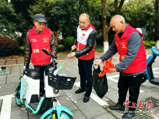 當(dāng)日天氣頗為寒冷,陰雨綿綿,但絲毫沒有影響大家公益服務(wù)的熱情。身穿紅馬甲的“湖南好人”歐陽振大、李遠(yuǎn)發(fā),“衡陽好人”尹冬英、王鑫等和“衡陽群眾”志愿者一起,在華新汽車站、生態(tài)公園、市一中等地沿路扶正共享單車,清理垃圾,勸導(dǎo)路人遵守交通規(guī)則,并向沿途飯店宣講衛(wèi)生條例,向市民發(fā)放文明手冊。他們的“彎腰”和“勸導(dǎo)”行動得到了市民好評和贊賞。
