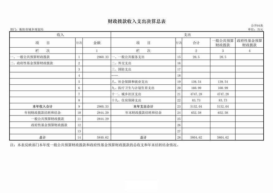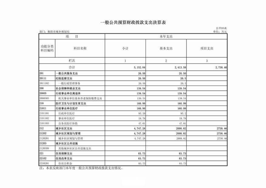 衡陽市城鄉(xiāng)規(guī)劃局部門決算