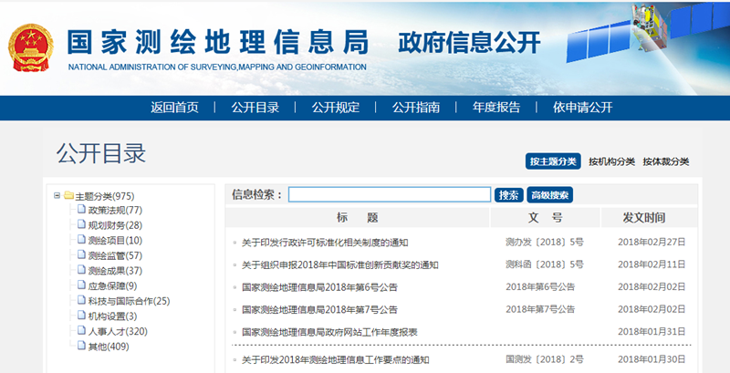 圖2:國家測繪地理信息局網(wǎng)站“政務(wù)公開”欄目
