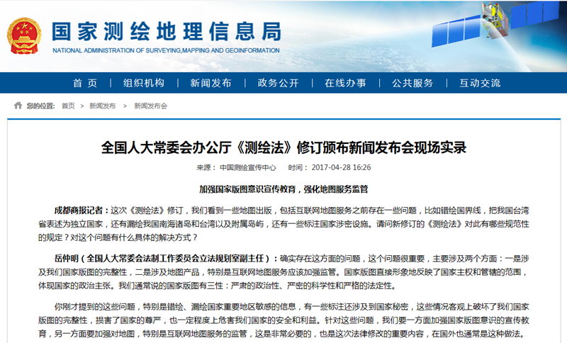 2017年國家測繪地理信息局對所有公開的政府信息未收取任何費用。